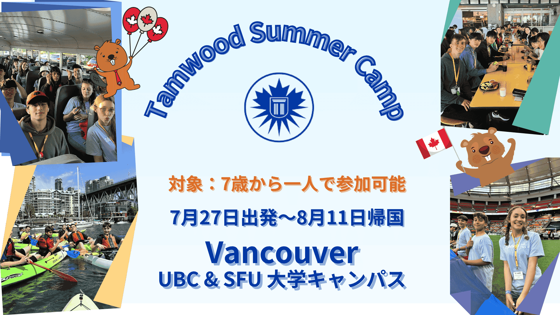 日本から子どもだけで参加できるTamwood Summer Camp in Canada 添乗付きプラン2025年度の参加お申込み受付は終了いたしました。たくさんのご応募、ご相談をいただきありがとうございました!!